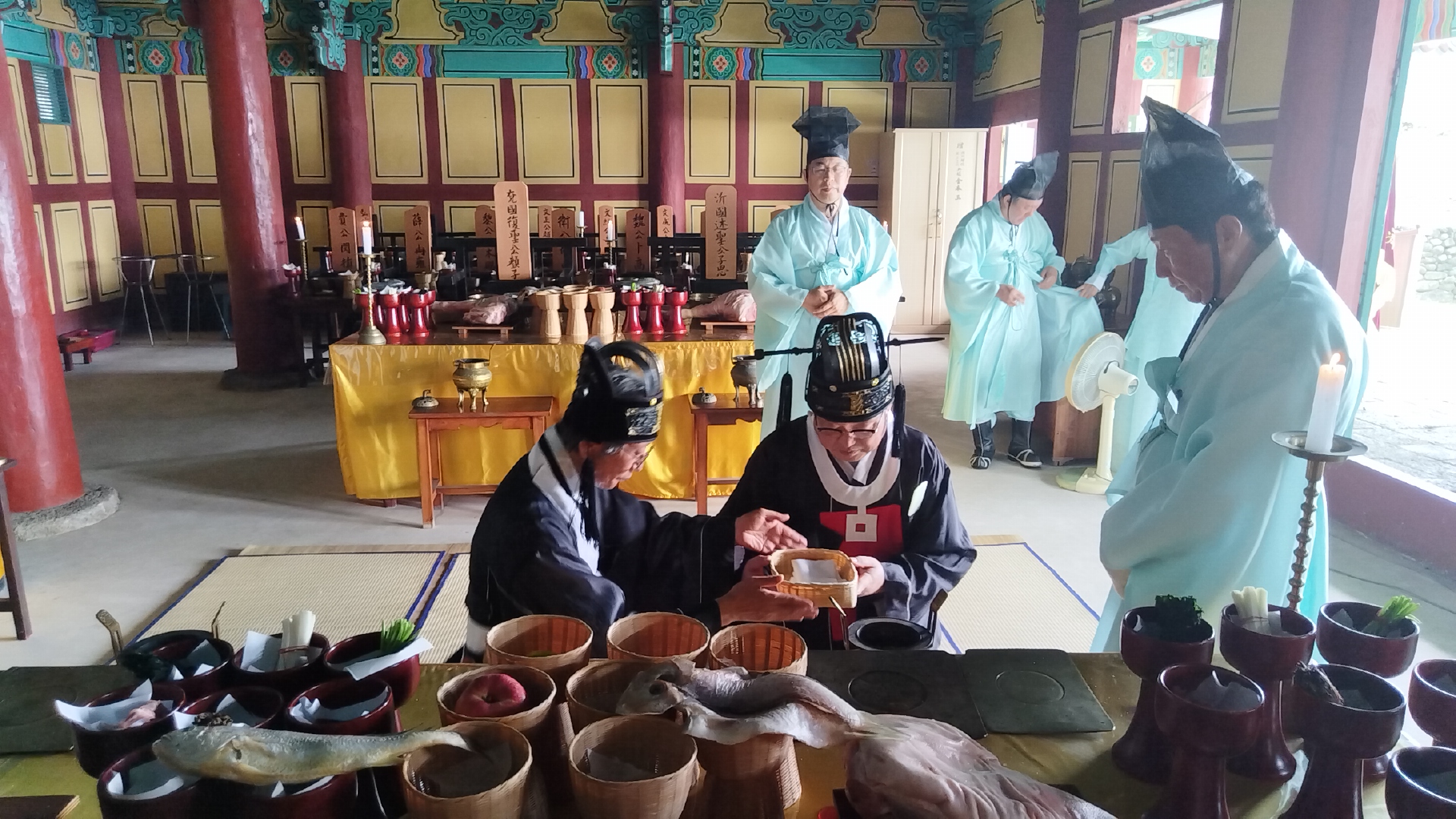 석전대제 전날, 유림들은 의관을 정제하고 향첩을 올리며 제물을 봉안하고 축문을 작성하는 등 모든 절차를 전통 예법에 따라 정성껏 준비했다.